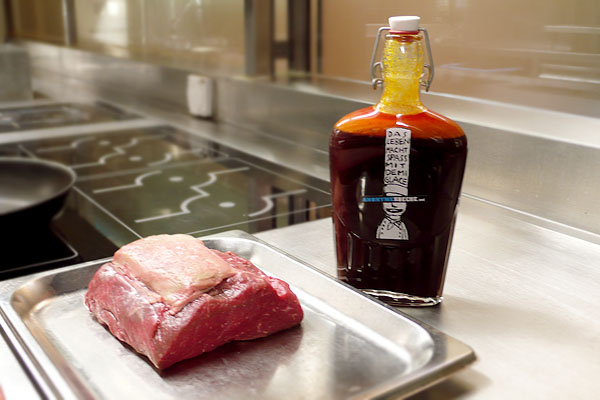 Das war lustig. Meier mag es nicht überkandidelt, wie er sagt. Aber die Sauce gefiel ihm gut, wie auch die Demiglace in der AK-Flasche. Sein Koch wollte mir ja den gewöhnlichen Kochwein reichen. Als ich sagte, sorry, ich brauche einen Ojo de Agua, musste er sich erst absichern: «Herr Meier …?» «Ja, ja, schon okay. Claudio darf machen was er will.»