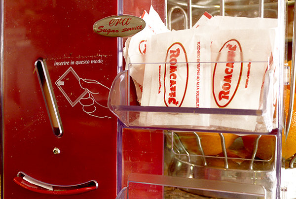 Hält man das Zuckertütchen in den «Era Sugar Service», wird es „guillotiniert“. Hurra! Es fliesst kein Schweiss und erst recht kein Blut.