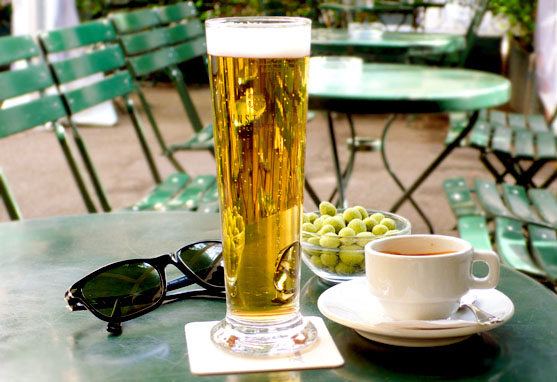 Espresso macht müde Beine munter. Aber bei Sommerhitze auch eine Zunge wie ein Bärenfell. Deshalb serviert ja auch jeder halbwegs humanitär veranlagte Barista ungefragt ein Eiswasser dazu. Ganz okay, aber eben nur Wasser. Und somit zu dünn. Ein Bier muss her.