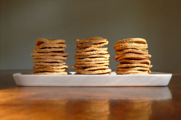 Unsere Äpfel geben wir gerne zum Mosten, in Kuchen, in Strudel zu Foie Gras oder eben in den Ofen zum Dörren. Sie schmecken um Welten besser, als die meisten gekauften, oft geschwefelten Apfelringe.