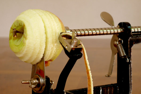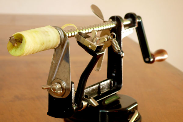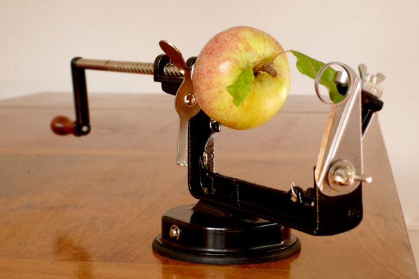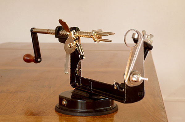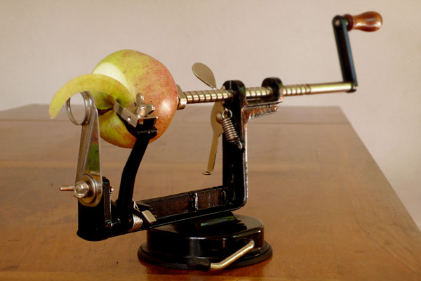-Voll heiss, dieses Teil. Wir haben auch so ein Modell aus den USA genannt „apple pealer corer slicer“. Als die Kinder noch klein waren habe ich das oft gebraucht für Zvieri Apfel oder zum Apfelwähe machen.