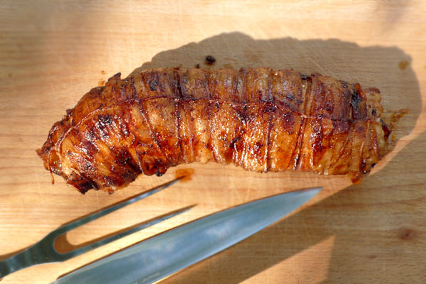 -Dieses Kunstwerk hat bei mir Überzeugungsarbeit geleistet. Unter normalen Umständen ist das Filet für mich das unattraktivste Stück am Schwein, aber so finde ich es toll.