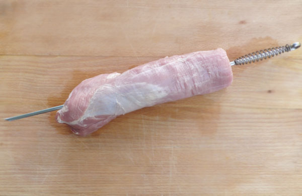 Anstatt das Fleisch zum Füllen längs aufzuschneiden, kann man es mit einem Schaschlikspiess perforieren. Durchstich mit dem Stiel eines Holzlöffels ausweiten und mit den gedörrten Zwetschgen stopfen.