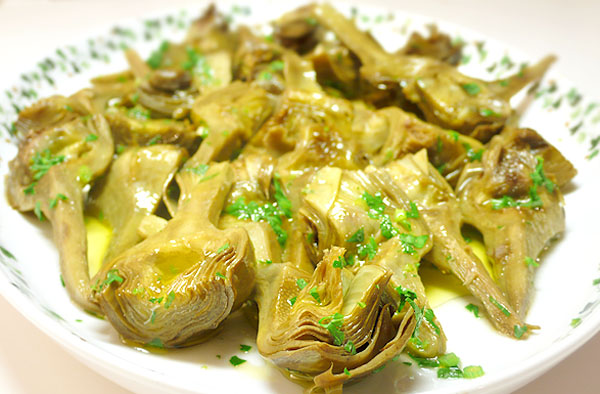 Nach wie vor in der glücklichen Lage, gute und zahlbare Artischocken zu bekommen. Das ist dann so ein Fall von Haupfutter. Mehr als knupriges Brot braucht es zu den mit Knoblauch und Petersilie in Olivenöl zart geschmorten Lieblingen nicht.