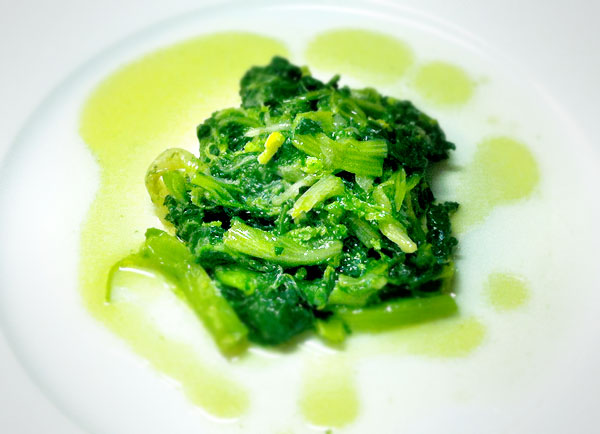 Geht auch ohne Pasta: Mangold, Cima di Rapa, Catalogna, Spinat. Hauptsache Olivenöl und Knoblauch.