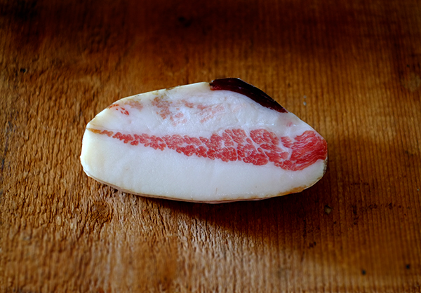Um diesen unvergleichlich feinwürzigen, luftgetrockneten italienischen Speck aus der Schweinebacke wieder einmal in die Finger zu bekommen, musste ich mich gedulden, bis ich letzthin wieder einmal in Milano bei einem Feinkosthändler Fuss fasste.