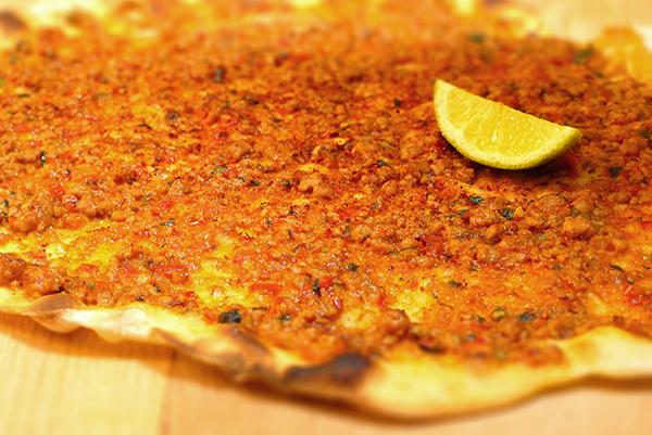 Einen Augenblick später holte er die dampfende, mit dicken dunklen Blasen übersäte Lahmacun aus dem Ofen. Er streute ungefragt Pul Biber darüber, setzte einen Zitronenschnitz darauf und liess uns essen.