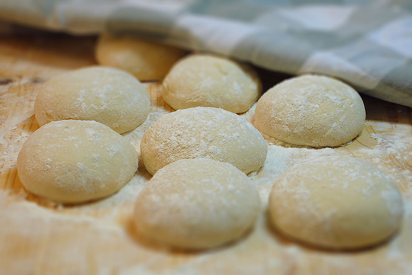 Faustgrosse Teiglinge formen, bemehlen, zugedeckt 30 Minuten gehen lassen. Dann ultradünn auswellen und zum besteichen bereitstellen.