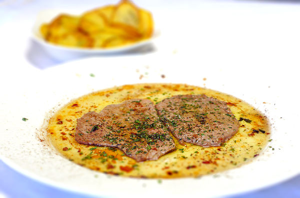 Höchste Konzentration: Kalbsschnitzel mit Zitronensauce und sonst gar nichts.