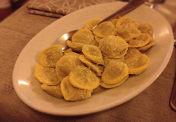 Sie kommt ein paar Minuten nachdem die Cappelletti serviert wurden nach vorn und erkundigt sich ob alles recht sei. Ich schwärme: «Diese Füllung! Was ist da drin?» «Parmigiano», erwiedert die Signora.