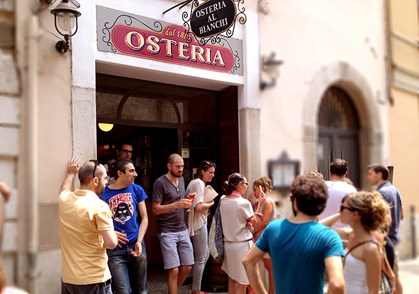 Der Laden brummt ordentlich über Mittag. Der Tresen könnte mit einem Wettbüro verwechselt werden, so laut bellen sich die Gäste, lachend, mampfend und Aperitivo trinkend an.