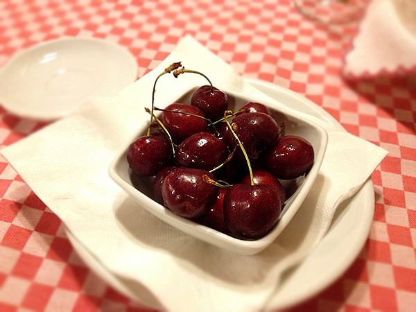 Ach, ich könnte noch lange schwärmen, ob dieser unschuldigen Einfachheit. Hier zum Beispiel: Wenn man als Nachspeise Frutta bestellt (was vor der Süssspeise Pficht ist, bei einem italienischen Mahl), dann bekommt man so etwas wie dieses kleine Schälchen süssester, knackigster Kirschen. Einfach so – ohne alles.