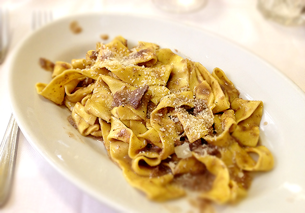 Bianchis Pappardelle al sugo di Guanciale (Speck von der Schweinebacke) sind ein rustikales Gedicht.